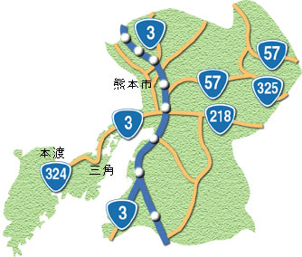 高速をお使いの場合、御船インター、もしくは松橋インターで、降りられてください。 |